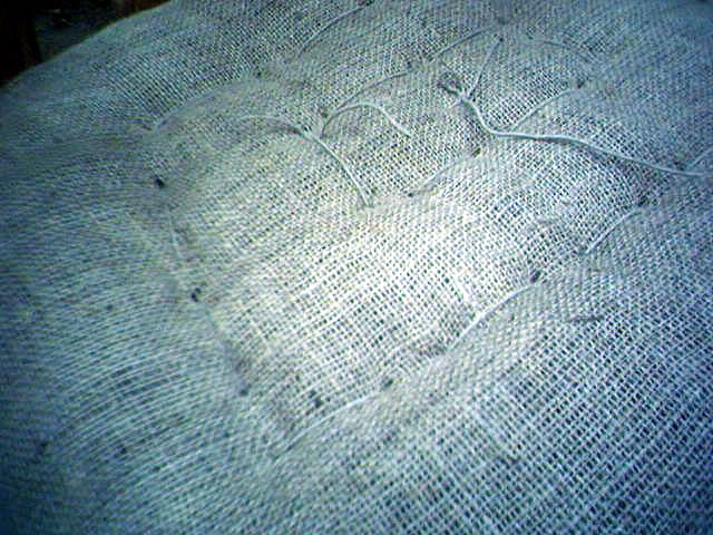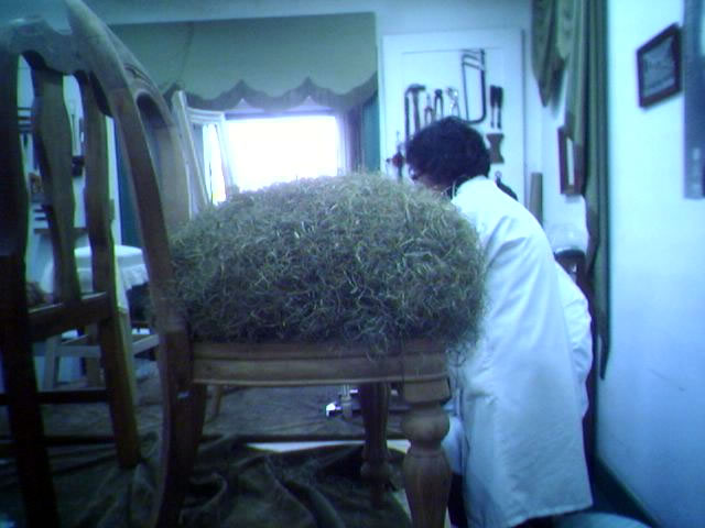 Ao colocar o pano da linhagem, a crina vai moldar-se à forma do assento. Quanto mais crina colocar mais resistente será o assento.
