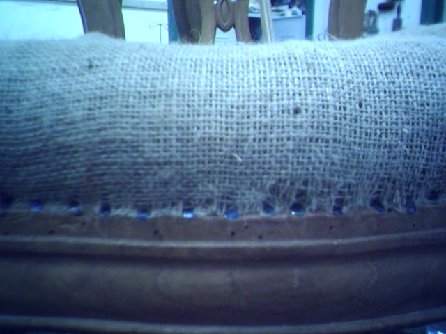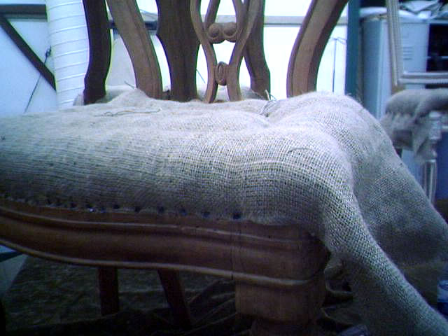 Este será o aspecto geral do ponto no centro do assento. Neste momento as costas, frentes e laterais ainda estão abertas, para que se possa colocar mais crina vegetal.